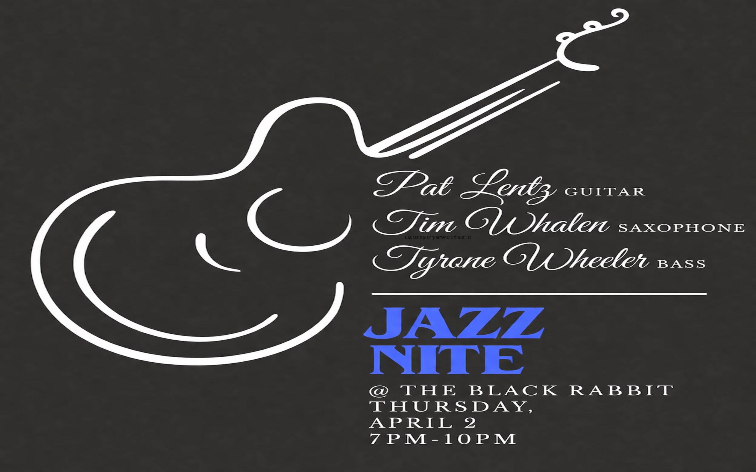 Join jazz guitarist Pat Lentz along with Tim Whalen (sax) and Tyrone Wheeler (bass) for a special nite of jazz at The Black Rabbit in St Matthews. Music 7pm-10pm. Reservations STRONGLY encouraged. Smooth music and velvet vibes with three of Louisville’s finest jazz musicians at THE place for jazz in Louisville: The Black Rabbit in St Matthews.
